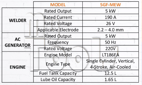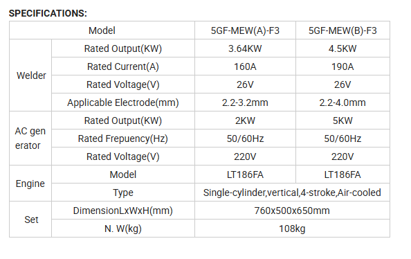 LUTIAN 5.0KW/5000Watt Diesel Welder Generator with 190Amp welding up to 4.0mm 5GF-MEW(B) -
